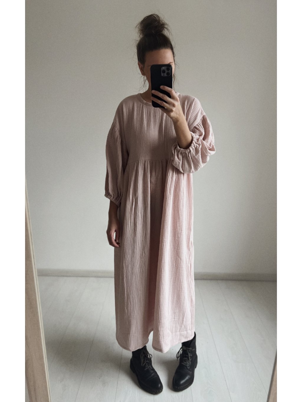 Šaty OLIVIA s okrúhlym výstrihom maxi - púdrovoružová