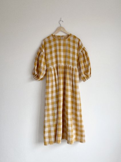 OLIVIA maxi šaty s 3/4 rukávom - okrové veľké káro